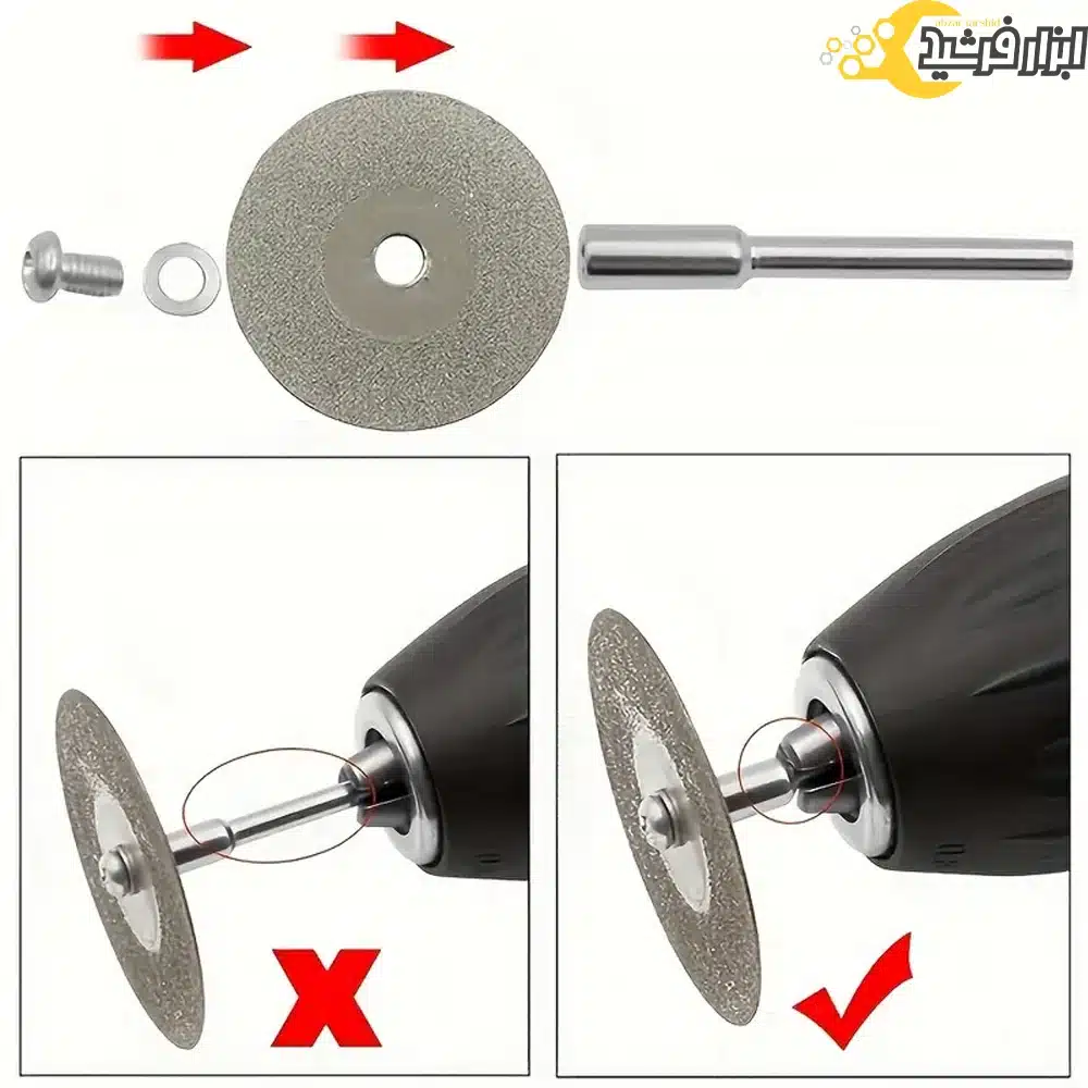 صفحه برش پودری الماسه با شفت 3 میل قابل نصب برای فرز مینیاتوری